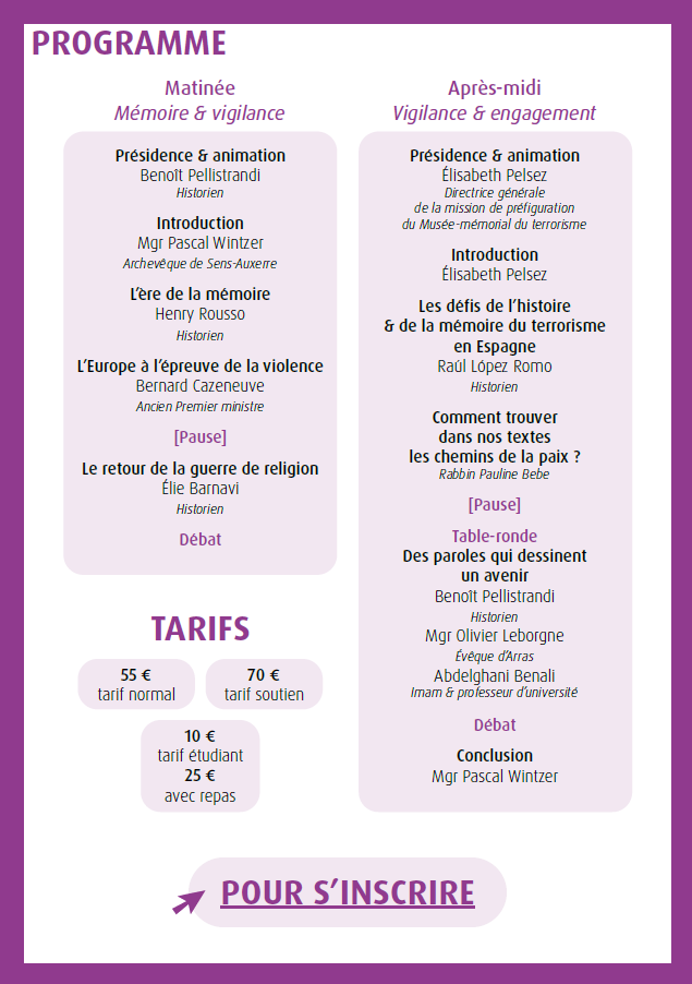 The morning session was opened by Henry Rousso, historian and president of the mission de préfiguration du Musée-Mémorial du terrorisme, who offered a reflection on the era of memory. His remarks interacted with those of former Prime Minister Bernard Cazeneuve, former Israeli ambassador to France Elie Barnavi and Mgr Pascal Wintzer, in a rich exchange on how societies confront terrorist violence and its traces.