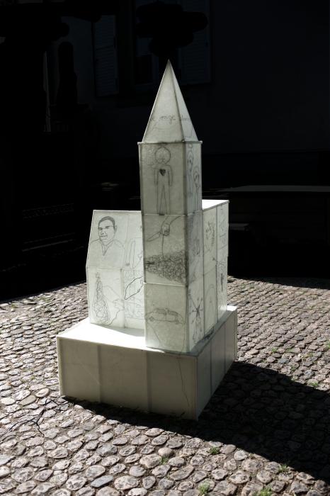 Nous avions dès le départ envisagé le mémorial comme une forme nous permettant de réunir l’ensemble des dessins réalisés par les élèves. La géométrie épurée de la cathédrale, monument emblématique de la ville de Strasbourg, s’y prête tout particulièrement.